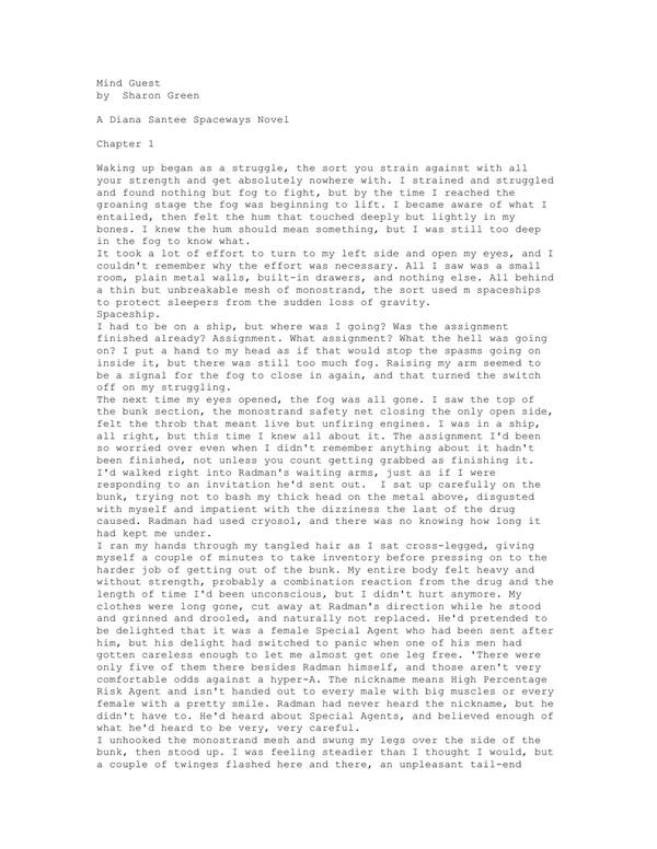 The next time my eyes opened, the fog was all gone. I saw the top of the bunk section, the monostrand safety net closing the only open side, felt the throb that meant live but unfiring engines. I was in a ship, all right, but this time I knew all about it. The assignment I’d been so worried over even when I didn’t remember anything about it hadn’t been finished, not unless you count getting grabbed as finishing it.