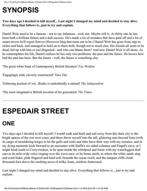 ‘The most imaginative British novelist of his generation’ The Times ESPEDAIR STREET