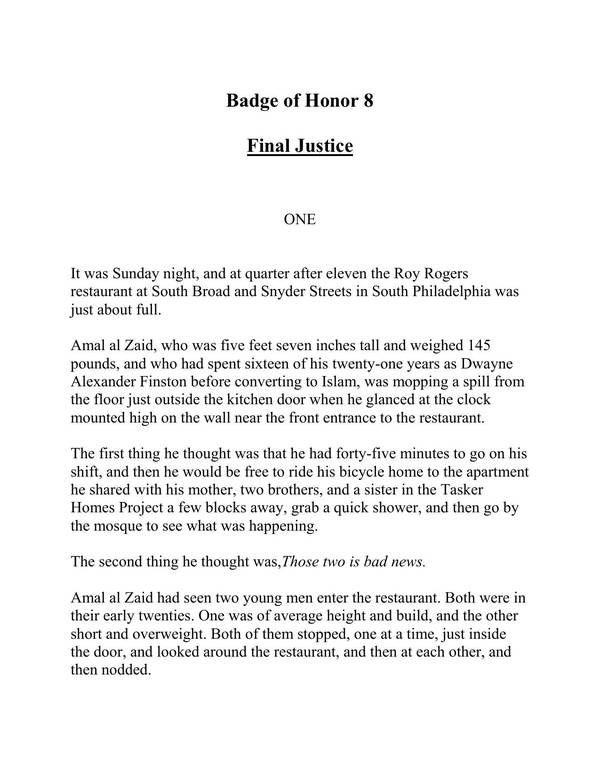 pounds, and who had spent sixteen of his twenty-one years as Dwayne Alexander Finston before converting to Islam, was mopping a spill from the floor just outside the kitchen door when he glanced at the clock mounted high on the wall near the front entrance to the restaurant.