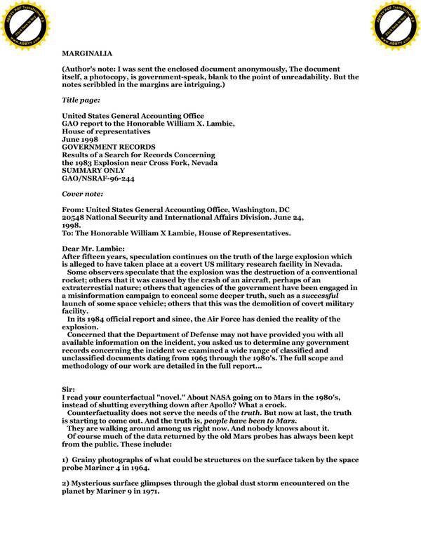 (Author’s note: I was sent the enclosed document anonymously, The document itself, a photocopy, is government-speak, blank to the point of unreadability. But the notes scribbled in the margins are intriguing.)