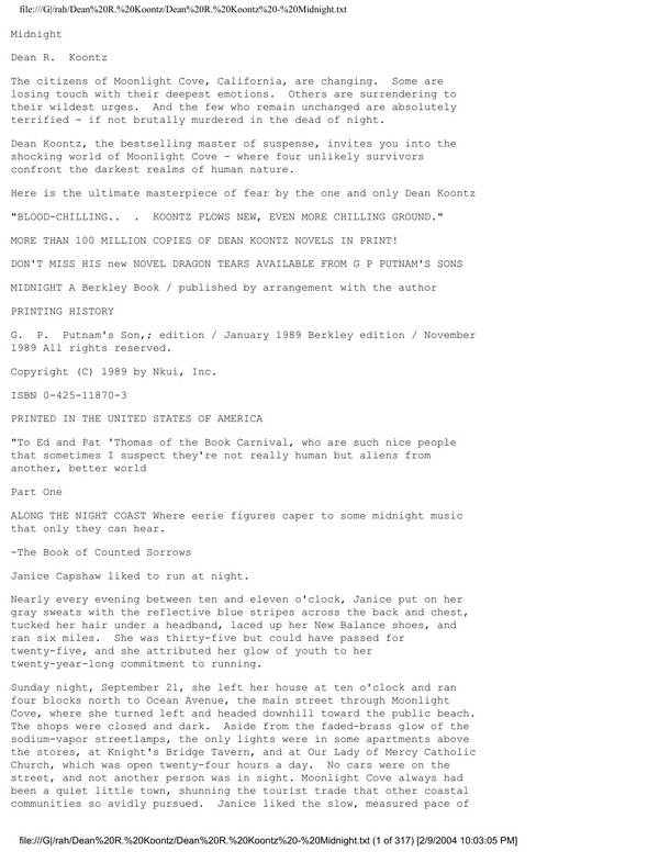 MIDNIGHT A Berkley Book / published by arrangement with the author PRINTING HISTORY