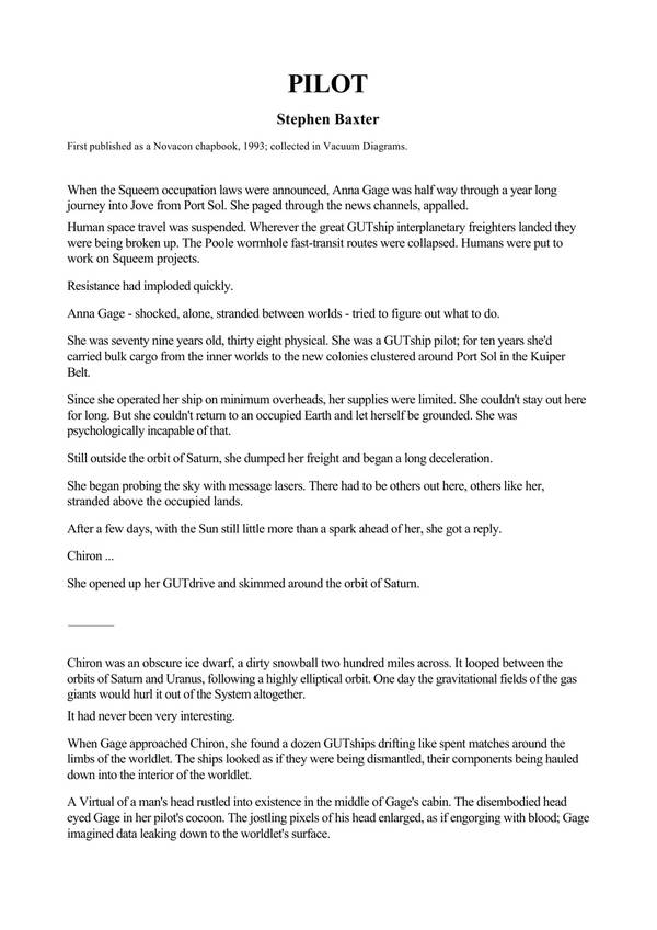 She was seventy nine years old, thirty eight physical. She was a GUTship pilot; for ten years she’d carried bulk cargo from the inner worlds to the new colonies clustered around Port Sol in the Kuiper Belt.