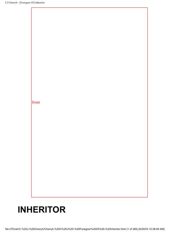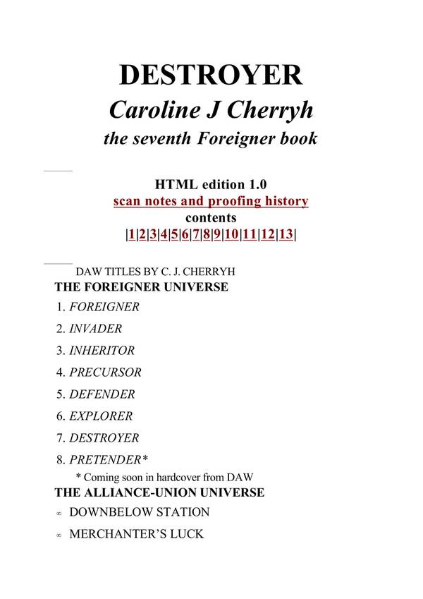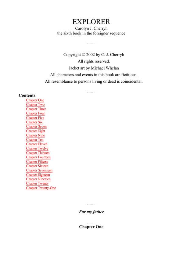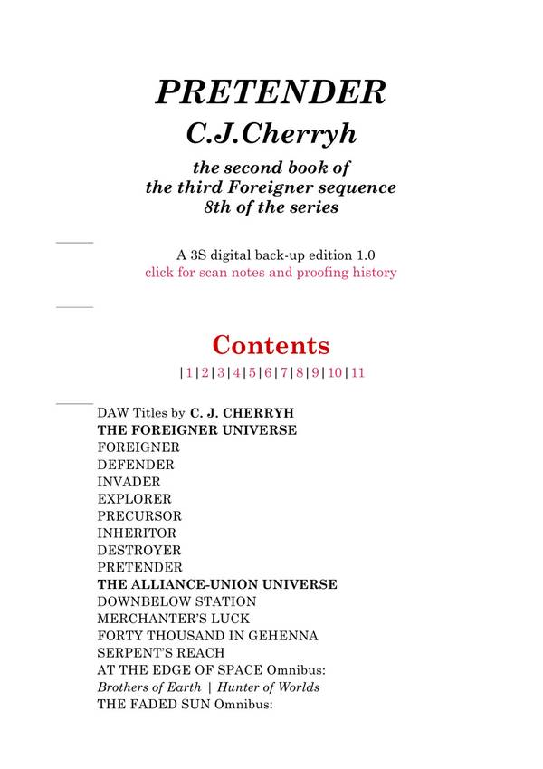 Book Preview Cherryh, CJ – [Union-Alliance] – Finity’s End Finity’s End Caroline J. Cherryh A Union Alliance novel Chapter I Contents -Next A system traffic monitor screen showed a blip where none had existed in this solar system. The wavefront of presence which had begun far, far out above the star spoke a series … Read more