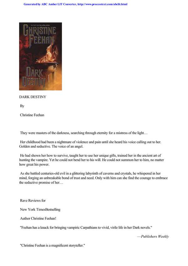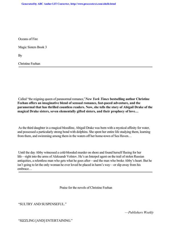 Book Preview Called “the reigning queen of paranormal romance,” New York Times bestselling author Christine Feehan offers an imaginative blend of sensual romance, fast-paced adventure, and the paranormal that has thrilled countless readers. Now, she tells the story of Abigail Drake of the magical Drake sisters, seven elementally gifted sisters, and their prophecy of love… … Read more