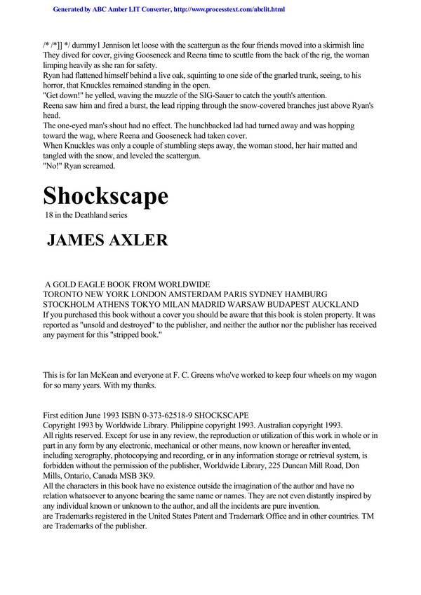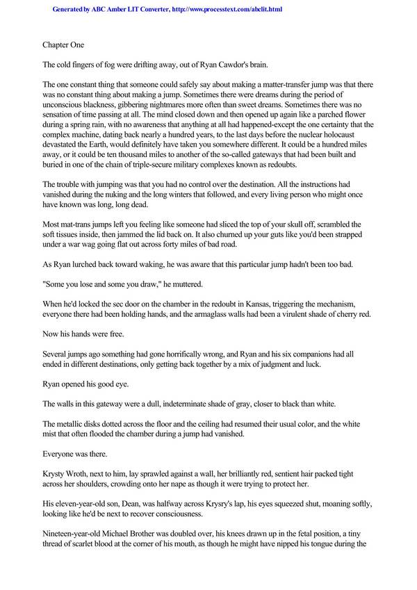 Book Preview Ryan Cawdor looked back one last time. The gusting wind suddenly tugged back the white fog, like a curtain across a huge window, revealing the shore. There were the jumbled rocks. Trader and Abe, standing side by side, faced away from the ocean. Surrounding them was a menacing circle of men, looking, as … Read more