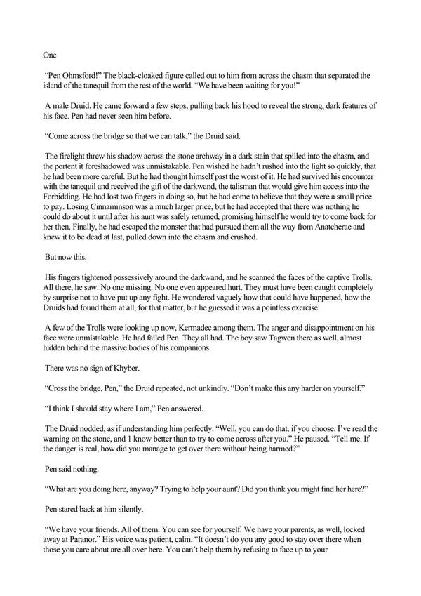 Book Preview “Pen Ohmsford!” The black-cloaked figure called out to him from across the chasm that separated the island of the tanequil from the rest of the world. “We have been waiting for you!” A male Druid. He came forward a few steps, pulling back his hood to reveal the strong, dark features of his … Read more